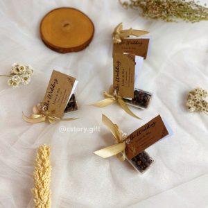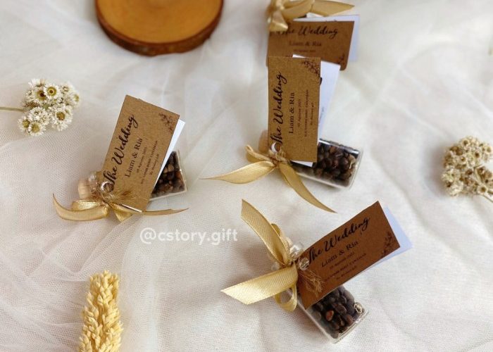 Selain itu, Anda juga bisa memilih desain yang mencerminkan tema pernikahan Anda. Jika Anda mengadakan pernikahan dengan tema vintage, Anda bisa memilih souvenir dengan desain klasik dan elegan. Anaria menawarkan berbagai pilihan souvenir yang bisa dipersonalisasi sesuai keinginan Anda, memastikan setiap detail sesuai dengan visi pernikahan Anda.
